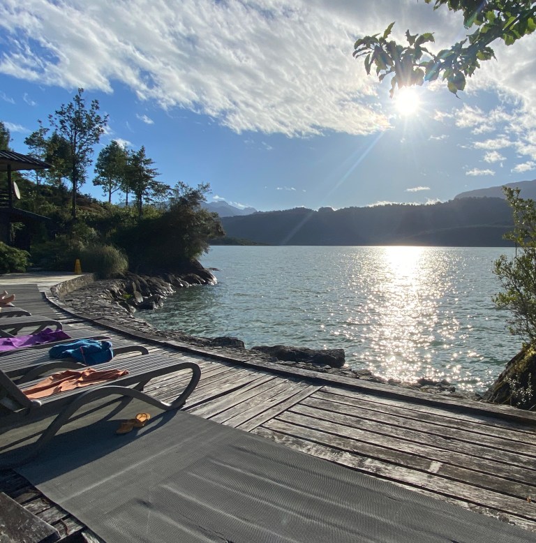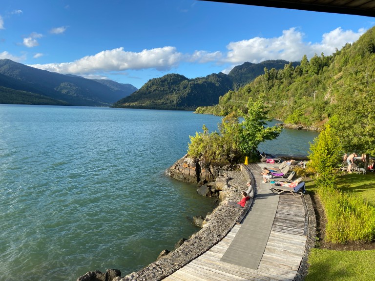 After the bumpy, winding roads of Patagonia we were ready for some relaxation. The Termas Ventisquiero (Snowdrift Hot Springs) were just what we needed. These beautiful hot baths were improved with wooden decks and located on the shores of an ocean inlet. There was no snow visible on this warm fall day, but we certainly enjoyed the relaxing waters.