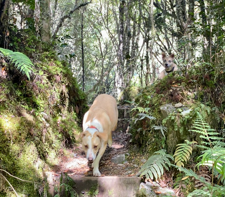 Pacha (we adopted her in Peru is the bigger dog – here is her story: https://slowcarfasthouse.com/2019/10/19/peru-adopting-a-dog/
