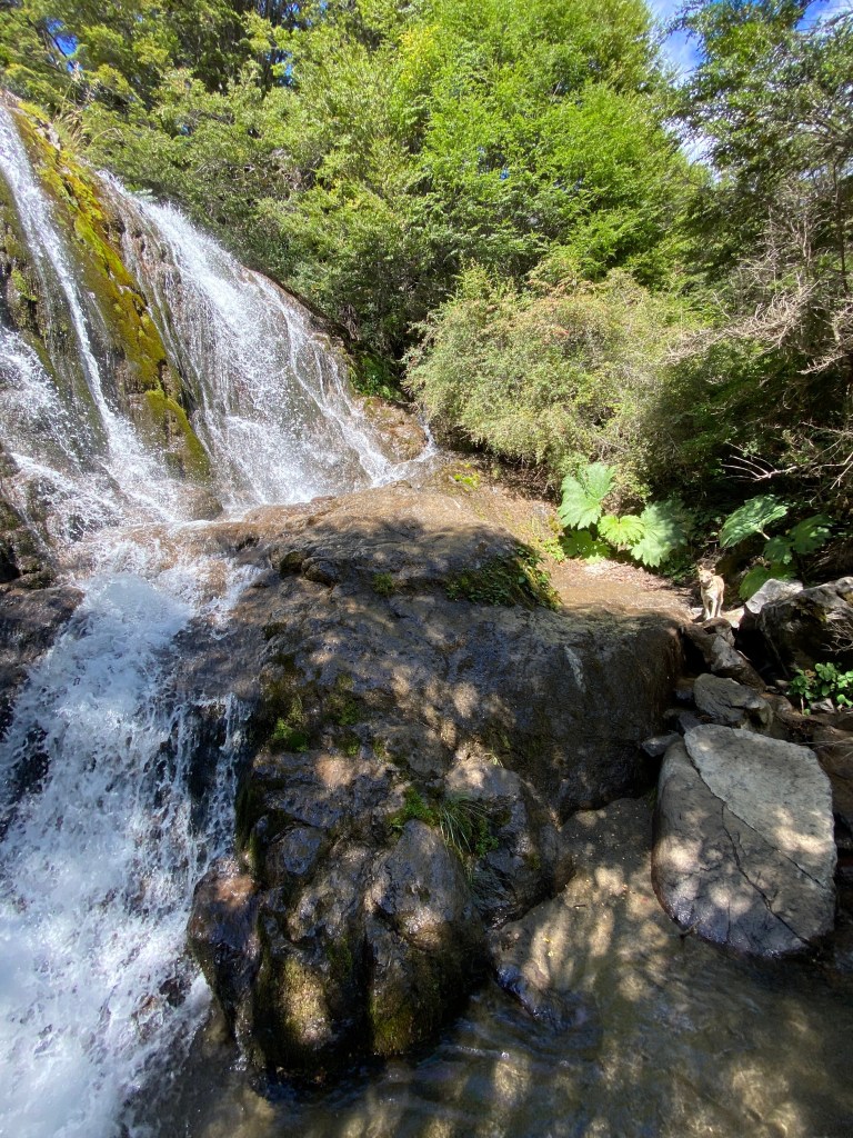 The curves were sharp and the warnings of approaching vehicles were non-existent. So we drove slowly and cautiously. The flora changed as we went into lower elevations. But the snowy peaks of the Andes remained on the horizon. We stopped at a wide spot to cool the brakes and hike to a waterfall. It was an incredible little ecosystem of ferns, pines and vines. All surviving in the humidity of the waterfall and the cold of the Andes.
