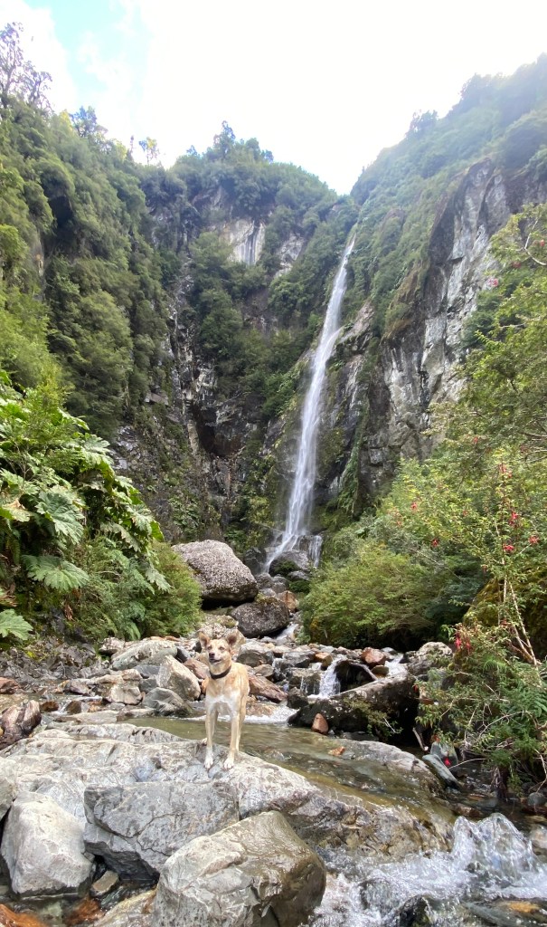 The curves were sharp and the warnings of approaching vehicles were non-existent. So we drove slowly and cautiously. The flora changed as we went into lower elevations. But the snowy peaks of the Andes remained on the horizon. We stopped at a wide spot to cool the brakes and hike to a waterfall. It was an incredible little ecosystem of ferns, pines and vines. All surviving in the humidity of the waterfall and the cold of the Andes.