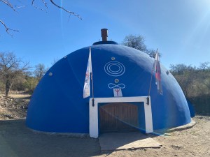 Several families live on site, and others were there visiting for a birthday party. Initially the leader was somewhat protected by another man. But when they realized that we were harmless, the guard was directed to take us on a tour of the property. The guard and his wife drove us around the acreage and told us of how they gave up their lives, wealth and careers to serve the temple. The man was trained by USA special forces but has disassociated from that past. He showed us a building called the Oca. This small is designed to give a meditational sound bath at a 528 Hertz to cleanse individuals and stimulate the pineal gland. They use this for special ceremonies. We were never asked to donate, worship or participate in any way. We felt welcomed to learn as much as we asked about, but nothing more. We spent several hours there, and left to continue through the desert to find a peaceful campsite at sunset.