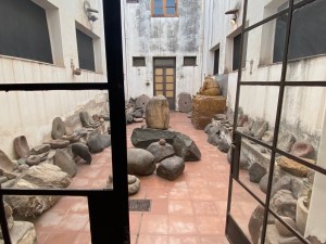 A little further down the highway we found a small village which included a heritage site protecting some ruins similar to what we had seen with the drone. Within the protective fence we found a few grazing llamas and a surprise. An extensive museum of items from the ancient people of this region. It was a surprising collection of high quality artifacts, most with no information or explanation. The main signage was impressive, as it displayed several languages, as well as braille and a link to listen to the text being read aloud on Spotify. Amazing accommodations for a tiny, dusty museum in the back country of Argentina.